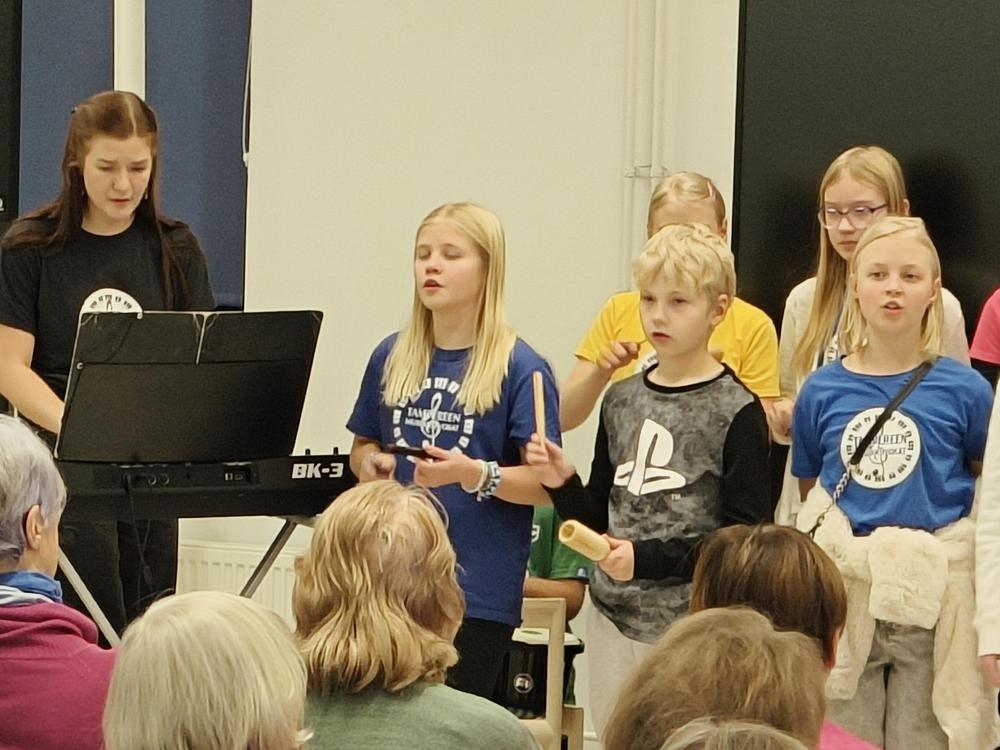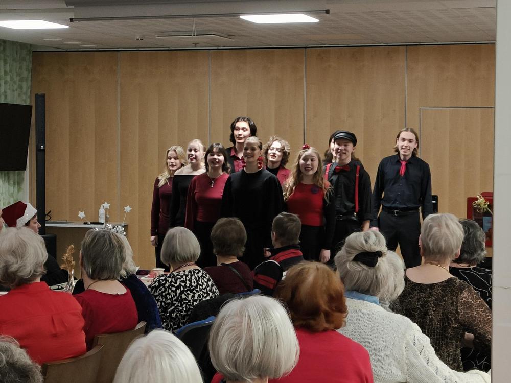 Ahvenisjärven koulun 5. musiikkiluokka johdatteli meidät joulun tunnelmiin ihanilla joululauluilla, opettajansa Moona Holmströmin johdolla. Säestyksessäkin näimme ja kuulimme oppilailla useita erilaisia piensoittimia. Aivojamme ja musiikkitietämystämme testasimme lopuksi Arjan ja Hannelen pitämällä Musavisalla. Aiheena olivat 70-luvun iskelmät, onnea vielä voittajille.