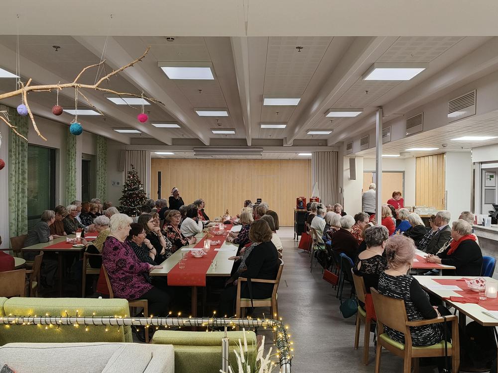 Keinupuistokeskuksessa vietimme yhdistyksen pikkujoulua lumisena perjantaina 21.11. Jouluruoka oli maittavaa ja kahvit ja joulutortutkin maistuivat. Ohjelmassa oli muun muassa laulua sekä tietovisoja.